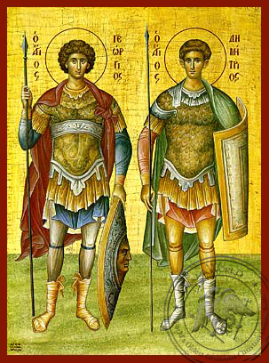 Previous Image Next Image saints-george-demetrius-hand-painted-byzantine-icon-9010 Icon of St. George and St. Demetrios