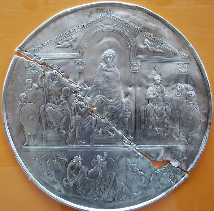 Previous Image Next Image theodosius_disk_merida.691×0-is-pid10594 Silver plate of Emperor Theodosius I with his sons Arcadius and Honorius