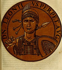 Previous Image Next Image 220px-Icones_imperatorvm_romanorvm,_ex_priscis_numismatibus_ad_viuum_delineatae,_and_breui_narratione_historicâ_(1645)_(14744350954) Emperor Leontios (r. 695-98), of Isaurian descent