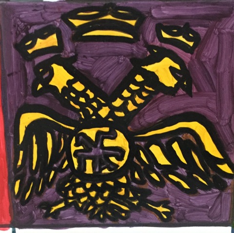 Previous Image Next Image 70224424_1323499478180036_7528156897619214336_n Byzantine double-headed eagle with a purple background