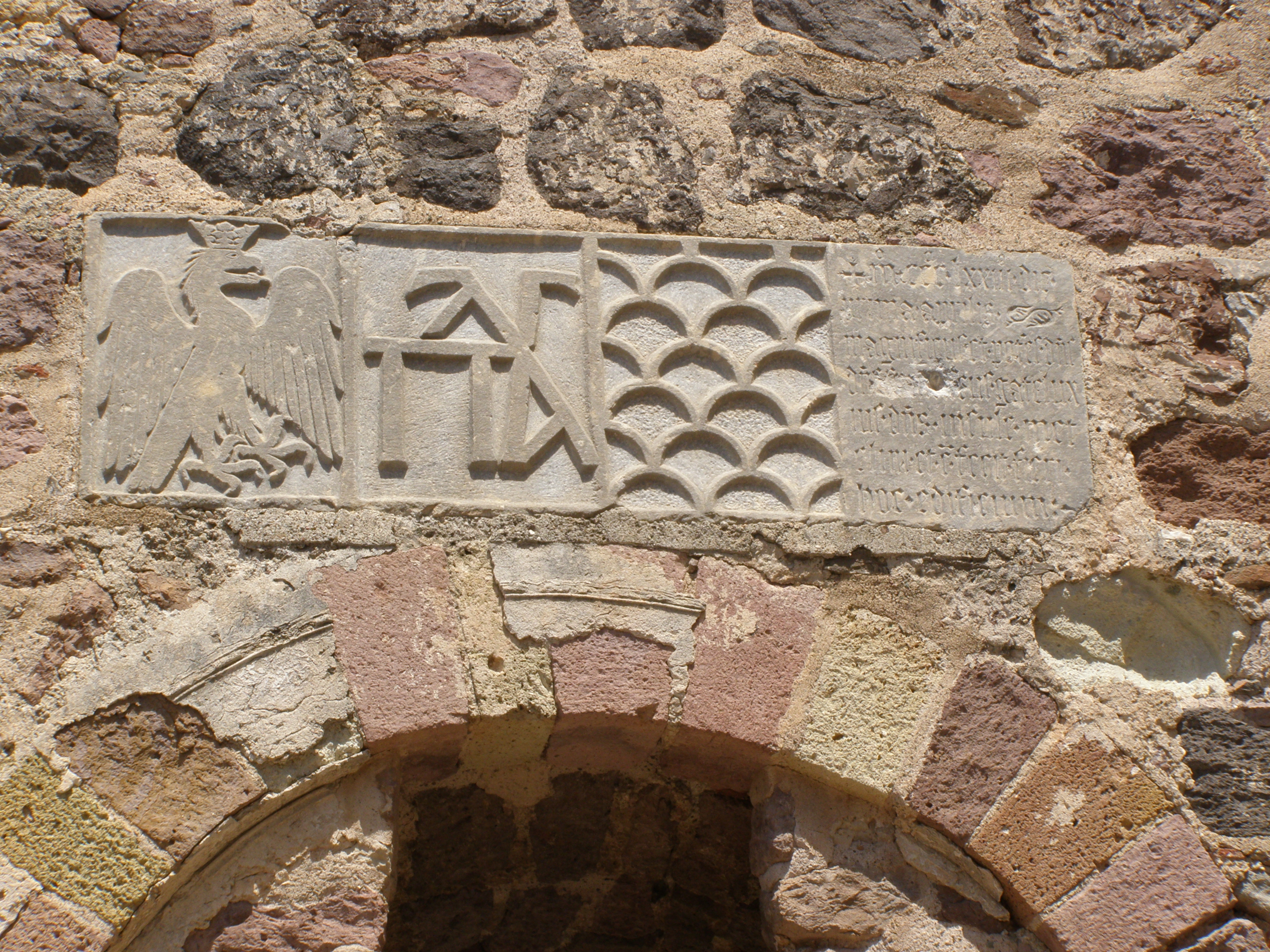 Left to right: seals of the Palaiologos family (first 2 from left) and Gattilusio (right), found in the fortress gate at Mytilene