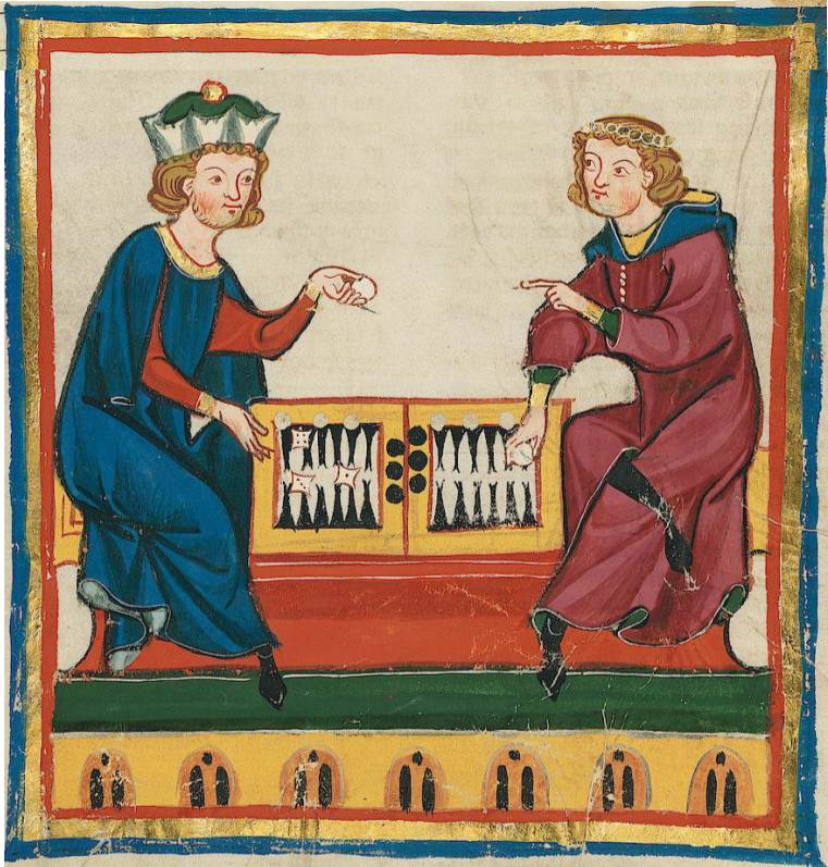 Previous Image Next Image Agathias_tavli_similar_scene_some_600_years_later Manuscript depicting Agathias (right) and Justinian I (left)