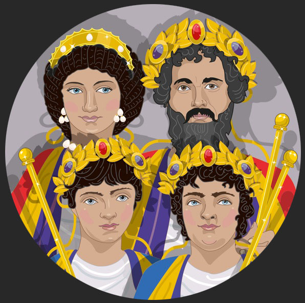 Reconstructed Tondo of the Severan family with Emperor Septimius Severus, wife Julia Domna and sons Geta and Caracalla
