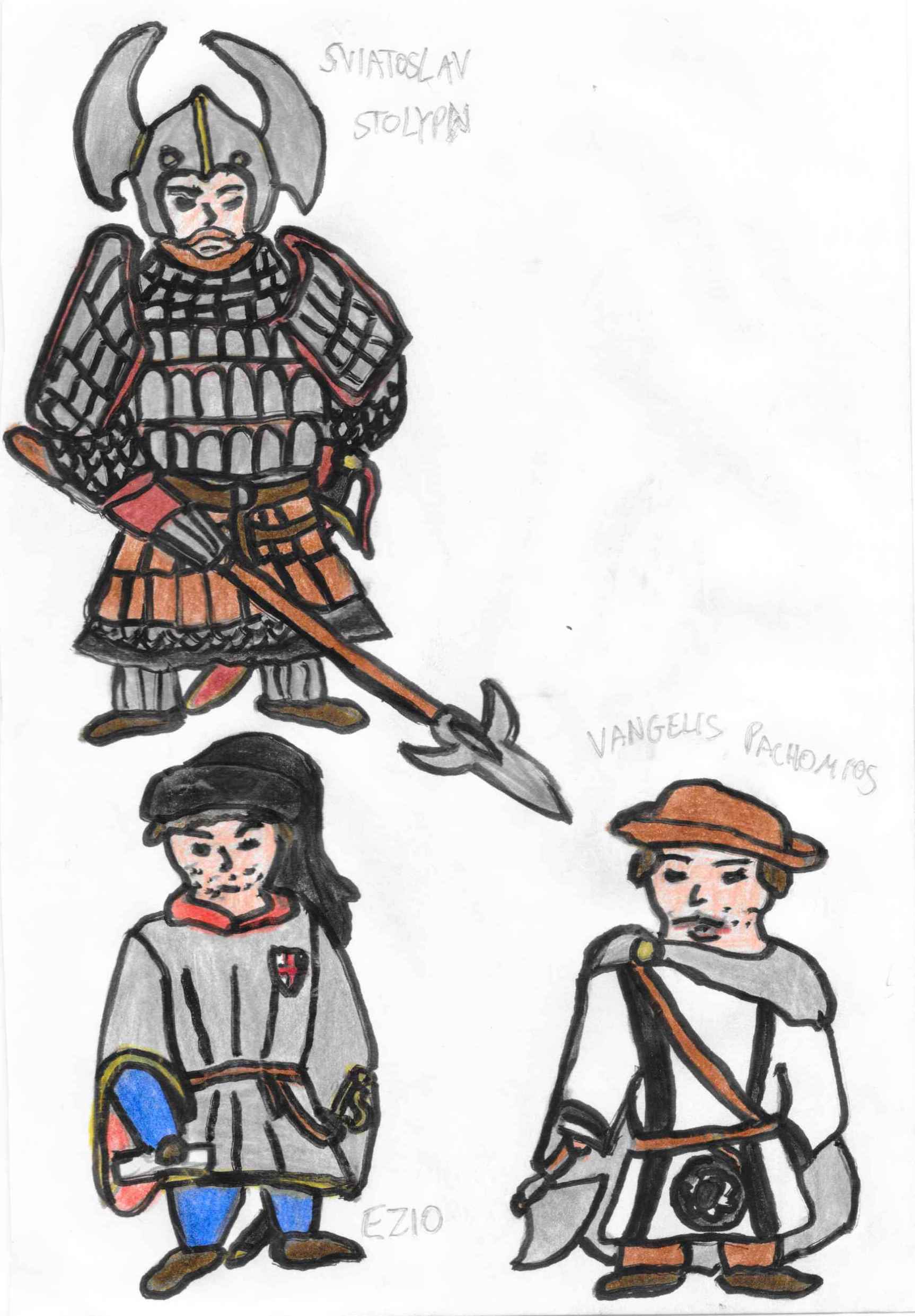 Previous Image Next Image HPSCAN_20200711155004848 Concept art of Sviatoslav (top), Ezio (bottom left), and Pachomios (bottom right)