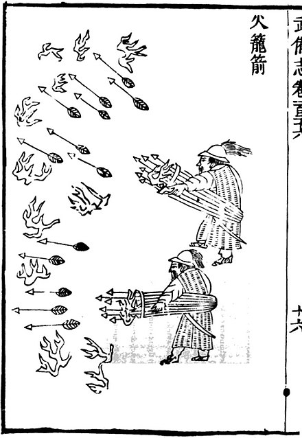 Previous Image Next Image 440px-11th_century_basketry_fire_arrow_rocket_launcher Use of rockets in Song Dynasty China