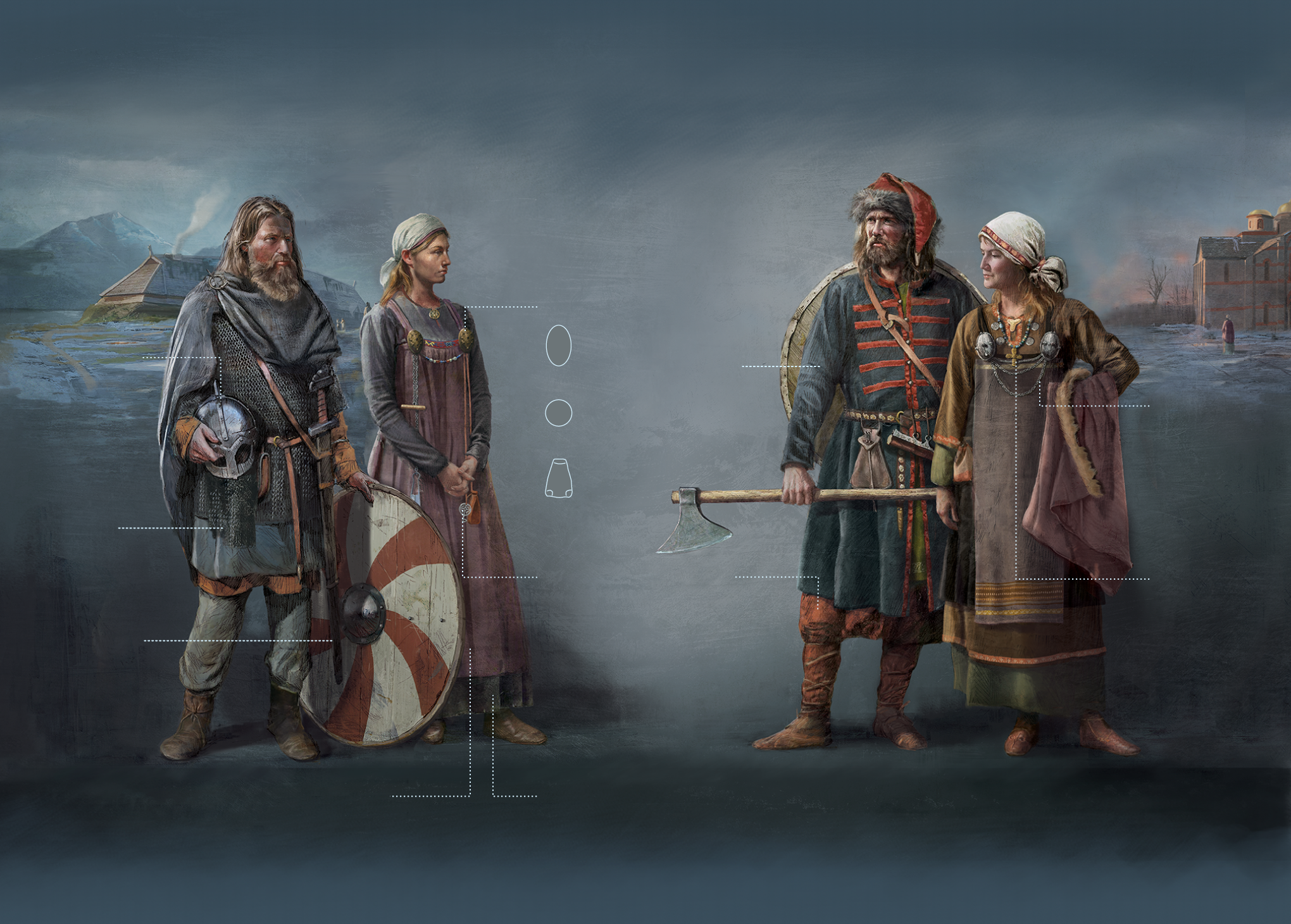 Vikings of the west (Norway, left) and Vikings of the east (Varangians of Sweden, right)