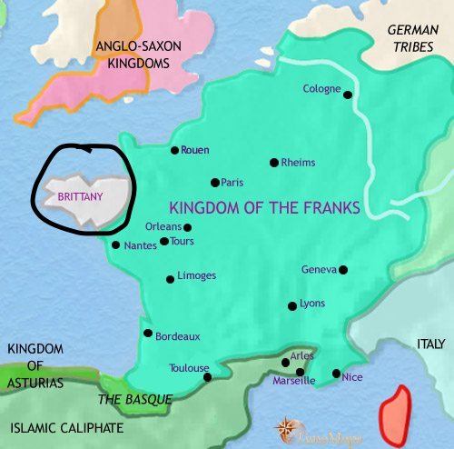 Location of the kingdom and later Duchy of Brittany in France