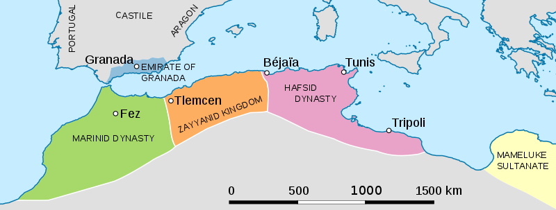 Previous Image Next Image 800px-Maghreb_15th_Century.svg Map of the Marinind, Zayyanid, and Hafsid kingdoms of North Africa, 14th century