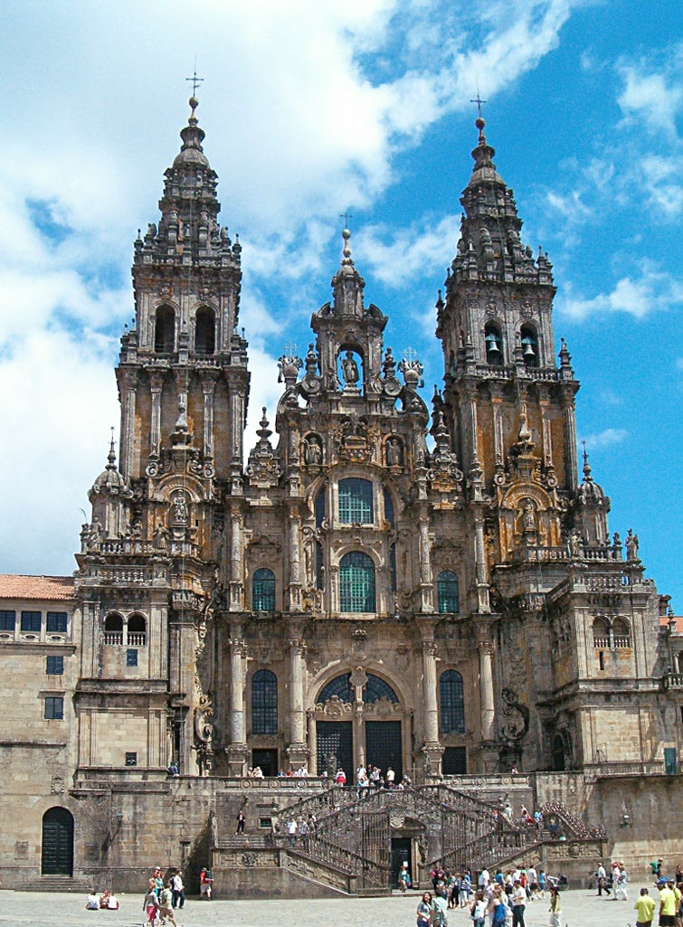 Previous Image Next Image SantiagoCompostelaObradoiro2 Cathedral of Santiago de Compostela, Spain, began construction in 1075
