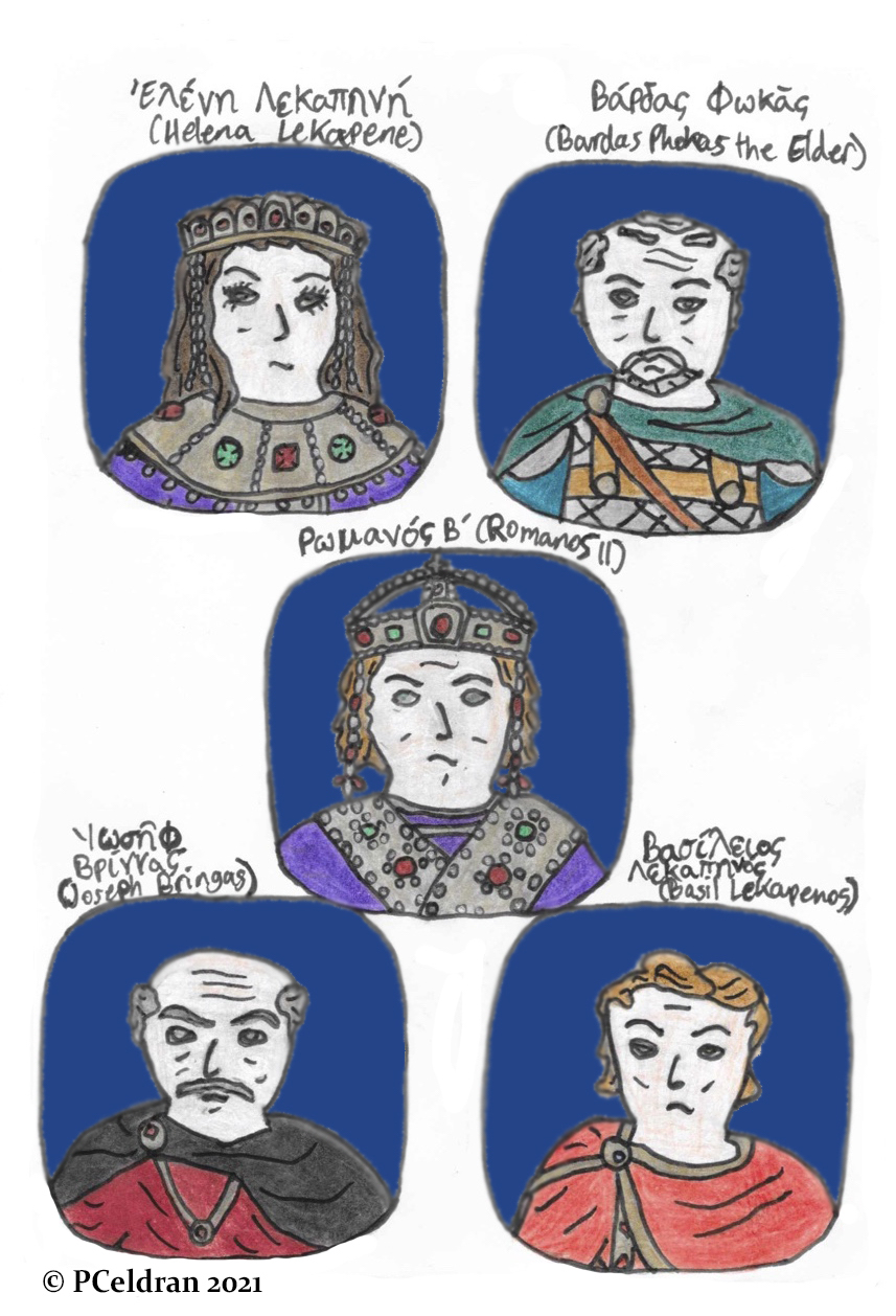 Story characters set2- Helena Lekapene, Bardas Phokas the Elder, Romanos II, Joseph Bringas, Basil Lekapenos