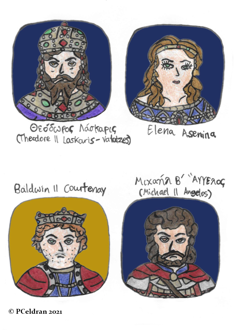 Story characters set2- Theodore II Laskaris-Vatatzes, Elena Asenina, Baldwin II Courtenay, Michael II Angelos