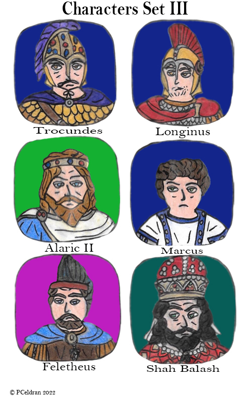 Previous Image Next Image 273007178_624757075262704_1622516889658908361_n Story characters set3- Trocundes, Longinus, Alaric II, Marcus, Feletheus, Balash